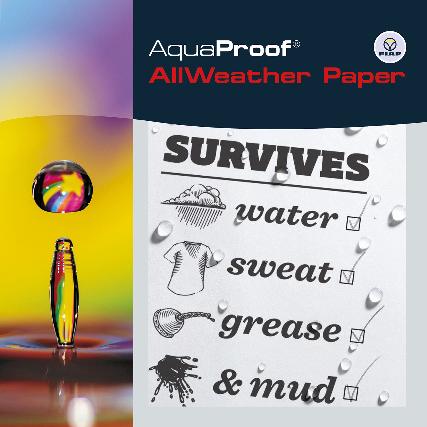 AquaProof® AllWeather Paper - Papier ermöglicht, bei Wind und Wetter im Freien Notizen zu machen. Die AquaProof® AllWeather - Produkte halten jeder Witterung stand.