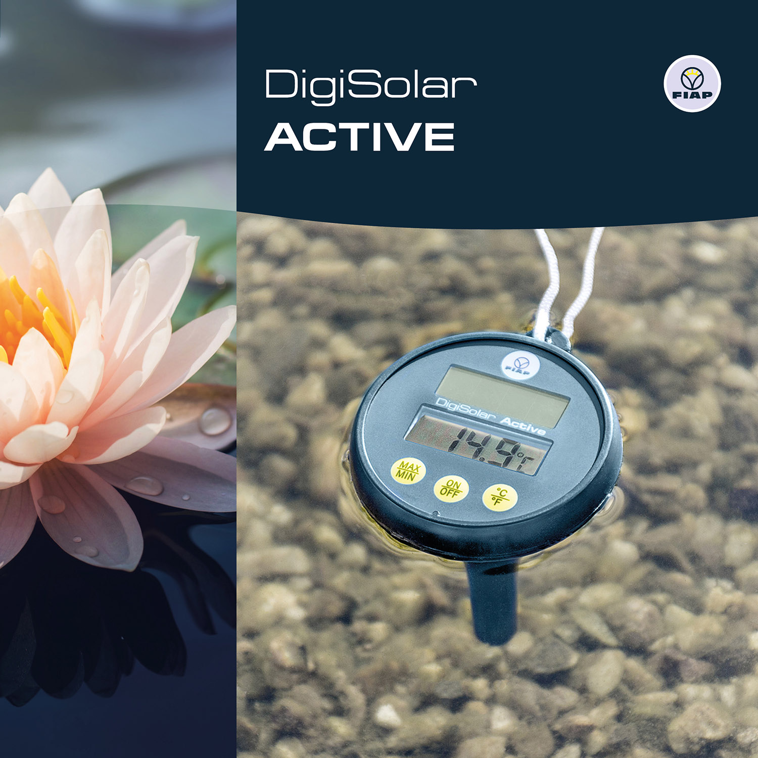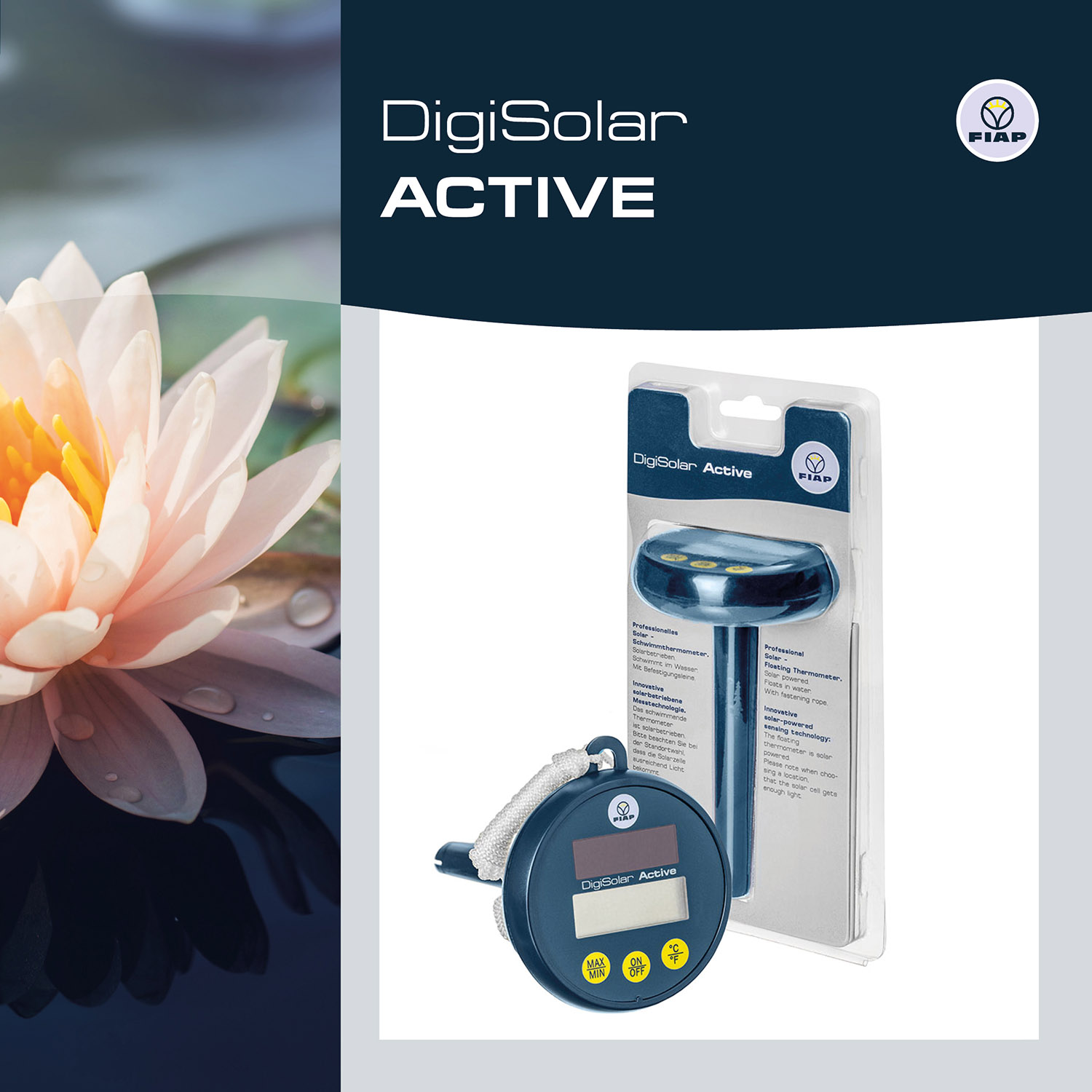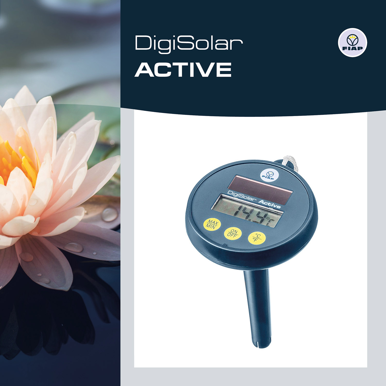 FIAP DigiSolar ACTIVE - Thermometer - Solarbetrieb - Solarzelle - Teichthermometer - Temperatur - Bequemes Ablesen der Wassertemperatur - Gartenteich - Schwimmteich - Pool - Wassertemperatur