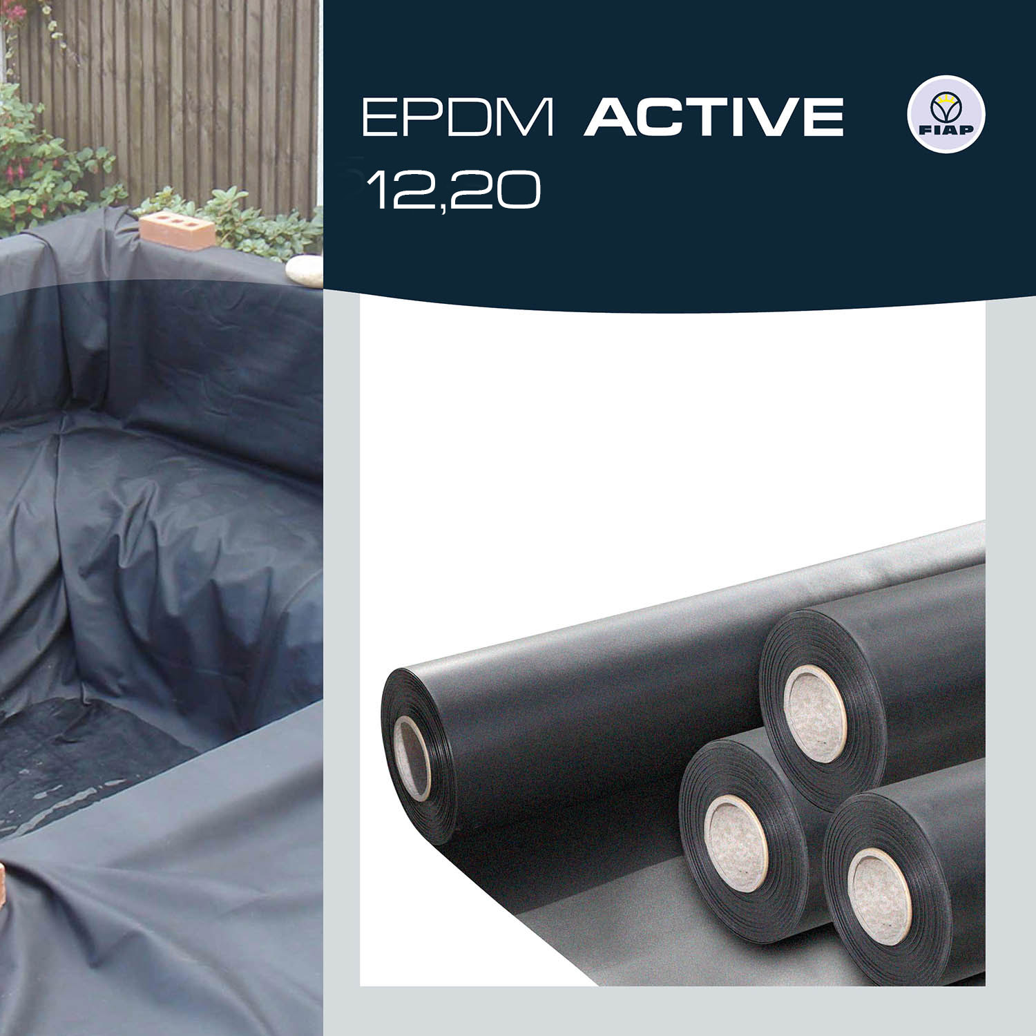 EPDM ACTIVE Kautschuk Teichfolie von FIAP wertet in wenigen einfachen Schritten Ihren Gartenteich, Zierteich oder Schwimmteich auf. EPDM ACTIVE Teichfolie (Materialstärke: 2 mm) ist ideal für sämtliche Wasserideen im Garten. Die Folie ist einfach einzubauen, widerstandsfähig und verträglich für Wasserpflanzen und Wassertiere.