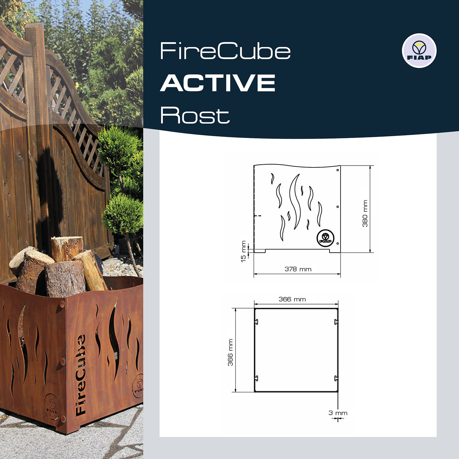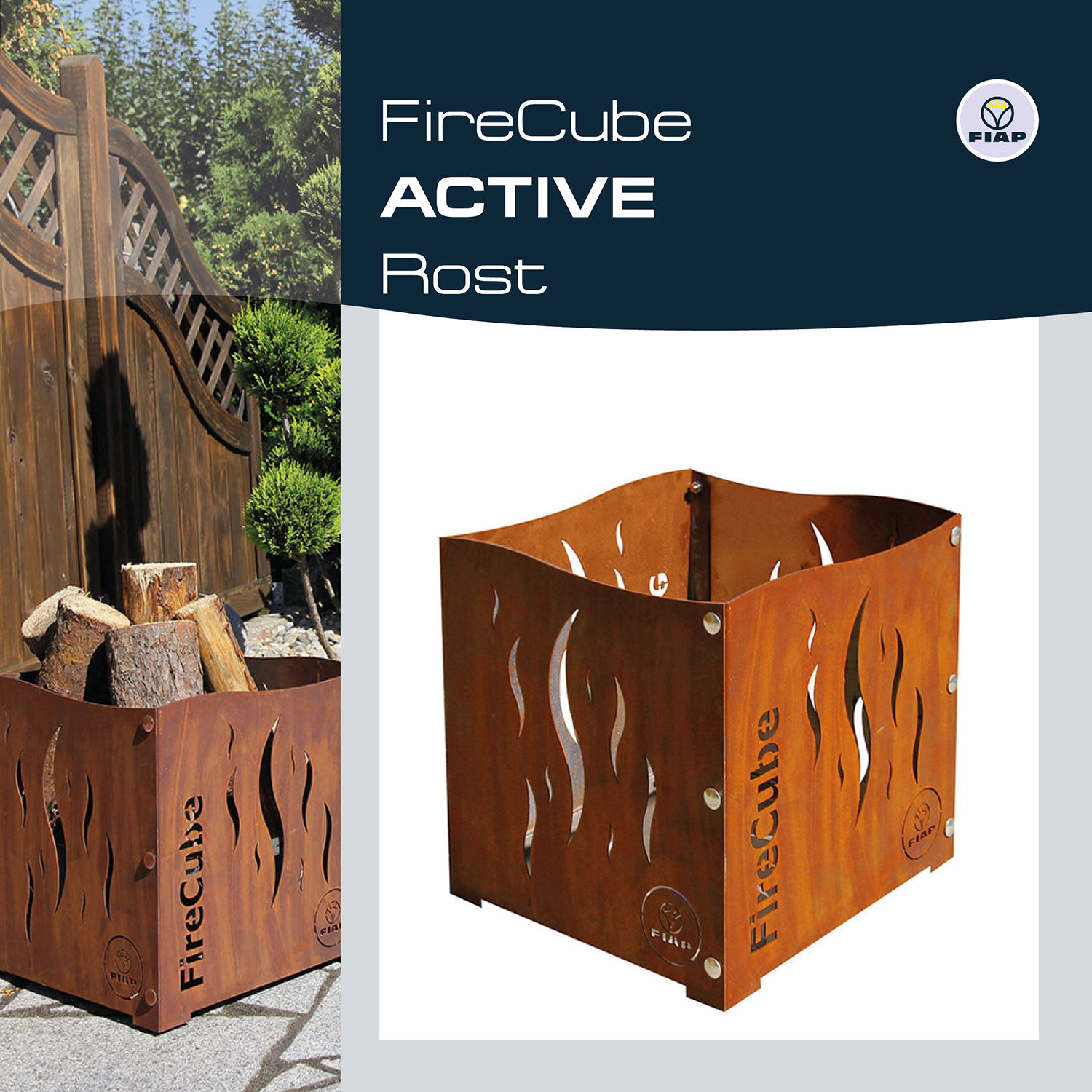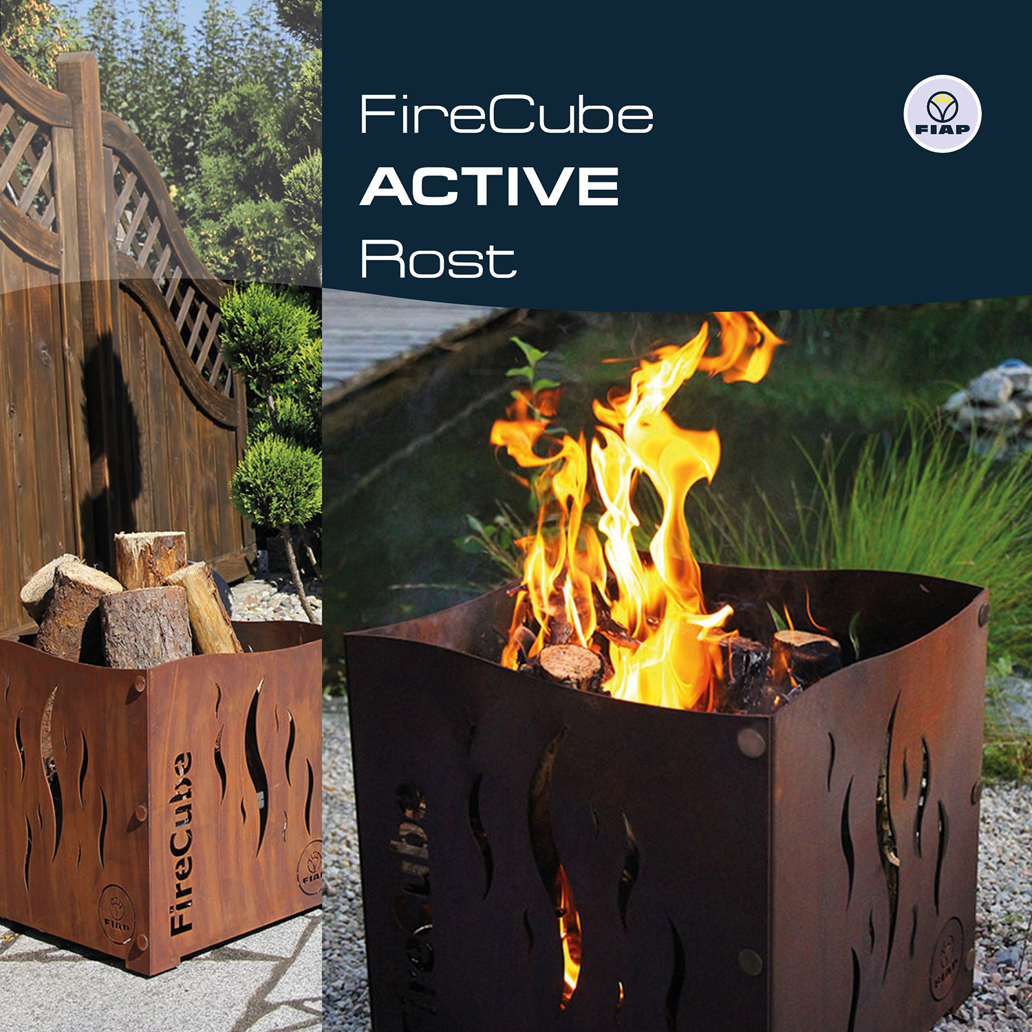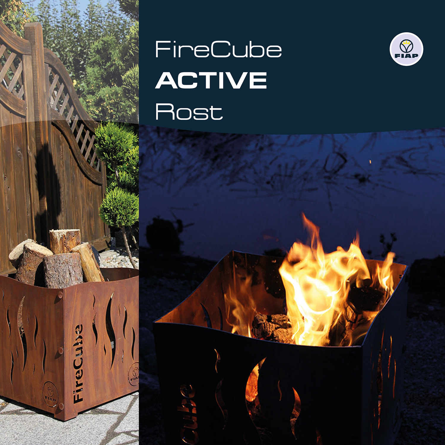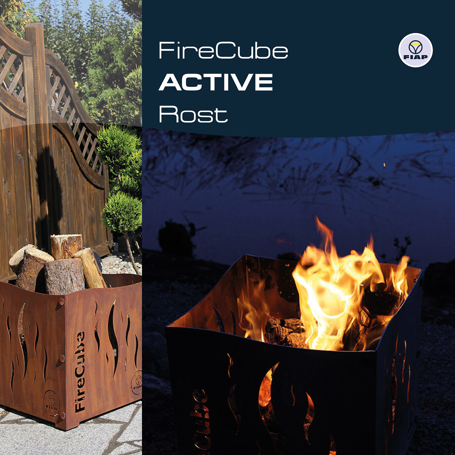 Noch nie war Feuermachen so stilvoll. Spätestens seit dem FireCube ACTIVE gibt es sie, die Designfeuerstelle für den Outdoorbereich. Diese Feuerstelle ist ein richtiges Highlight. Schon am Tage fügt sich der FireCube ACTIVE perfekt in Ihre bestehende Gartenlandschaft ein und wertet diese optisch zusätzlich auf. Je nach Stilrichtung und Ihrem persönlichen Geschmack, stehen dafür eine Rost- oder Edelstahlvariante zur Auswahl. Das wahre FireCube ACTIVE Feeling entfaltet sich erst so richtig mit Beginn der Abenddämmerung. Lodernde Flammen, knisterndes Holz, effektvolle Beleuchtung und das zu jeder Jahreszeit – überzeugen Sie sich selbst von der unvergleichlichen Wirkung des FireCube ACTIVE. Wir, von FIAP legen sehr viel Wert auf hochwertige Materialien sowie auf ansprechende Formen und Eleganz. Diese Faktoren verbinden wir mit premiumdesign.