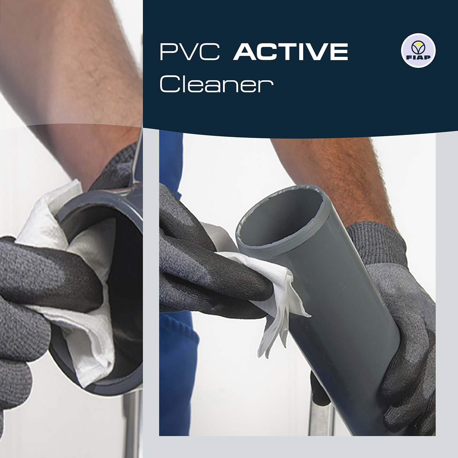 Der PVC ACTIVE Cleaner von FIAP ist das perfekte Reinigungsmittel für Klebeverbindungen aus PVC. Diesen PVC Reiniger auf saugfähige Papiertücher auftragen und die trockenen Klebflächen gründlich reinigen.
