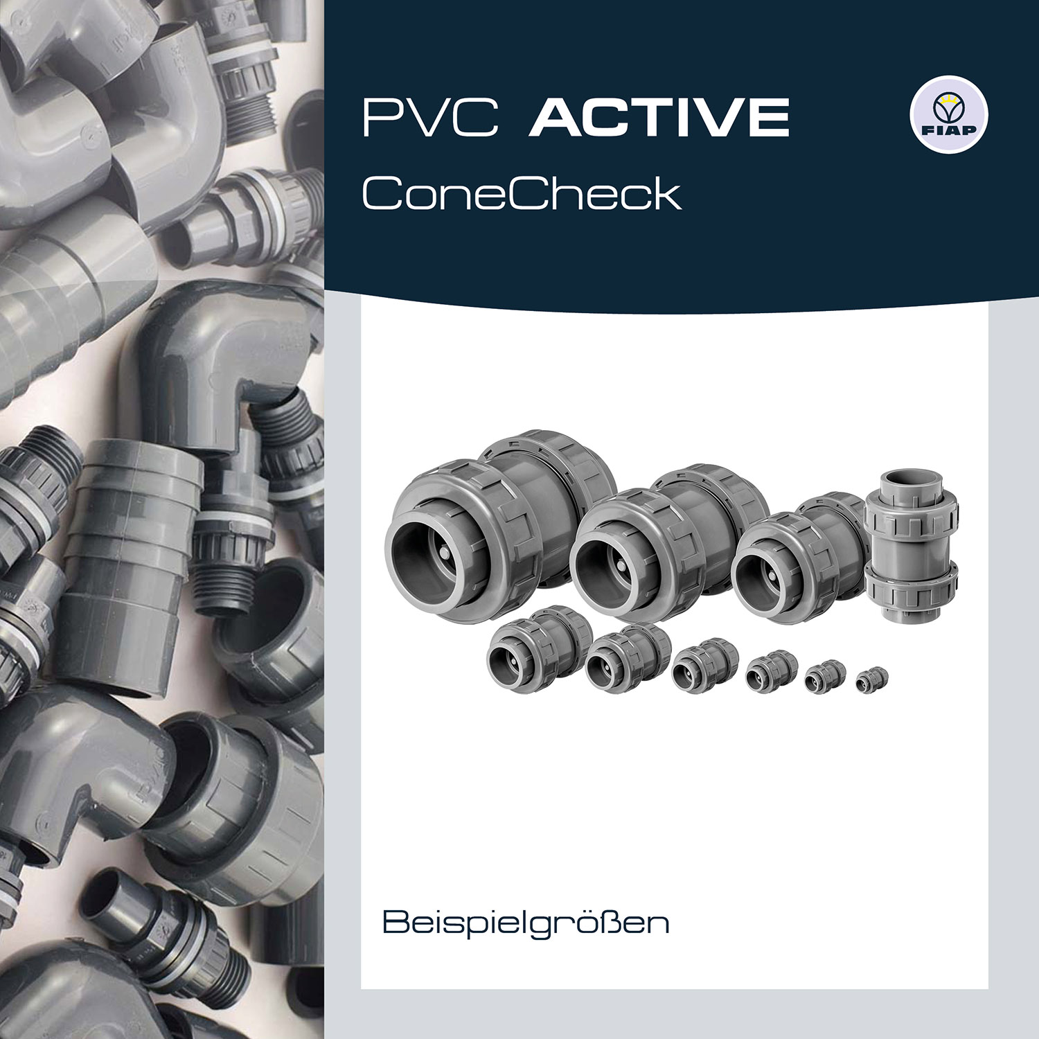 FIAP PVC ACTIVE ConeCheck 63 - PVC - Kegelrückschlagventil - Klebeverbindung - 2x Klebemuffe - 16 bar - Fitting - Teichbau - Poolbau - Ø 63 mm