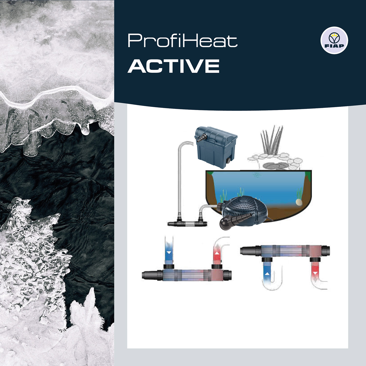 Mit dem ProfiHeat ACTIVE Teichheizer schaffen Sie sich die Möglichkeit, die Wassertemperatur Ihres Teiches das ganze Jahr über konstant zu halten. Das Wachstum der Teichfische wird dadurch optimiert und mögliche Krankheiten verhindert. Um Ihren Teich gesund über den Winter zu bringen, ist es wichtig, die Wassertemperatur bei mindestens 8 °C zu halten. Der professionelle ProfiHeat ACTIVE sorgt für eine gleichmäßige Wassertemperatur. Der elektrische Teichheizer mit Regelthermostat wird zwischen einer FIAP Teichpumpe und einem FIAP Teichfilter installiert. Abhängig von Lage, Isolation und Wasserqualität benötigen Sie, je nach gewünschter Wassertemperatur, eine Leistung von etwa 1.000 W auf 10.000 Liter Teichwasser. Im Lieferumfang sind 2 Schlauchanschlusstüllen (25 - 32 - 40 mm) und 2 PVC Fittinge (50 - 63 mm) zum integrieren in ein Rohrsystem enthalten.
