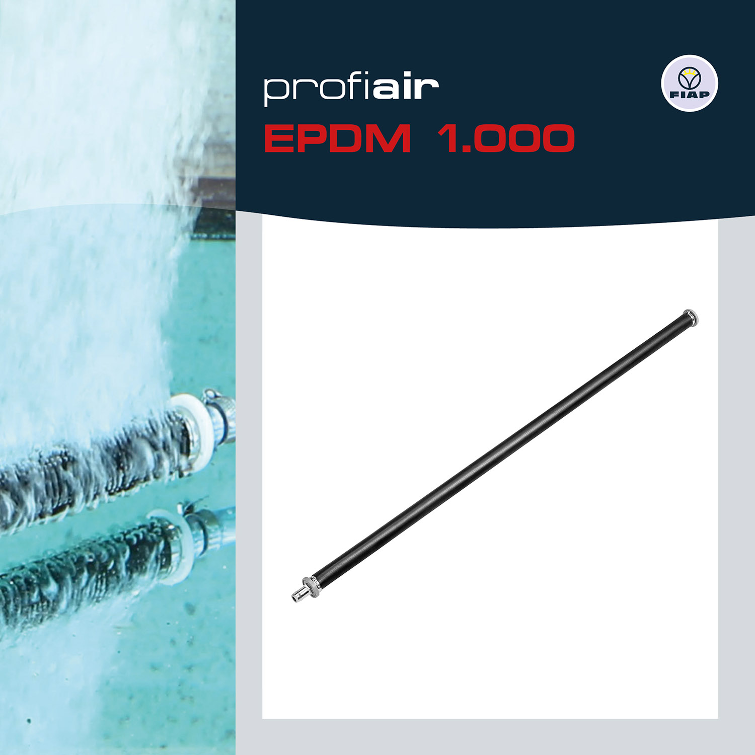 Der profiair EPDM Luftausströmer von FIAP hat eine Abmessung von 1.000 x Ø 30 mm und eine 18 mm Metallanschlusstülle oder 1/4" R Außengewinde.