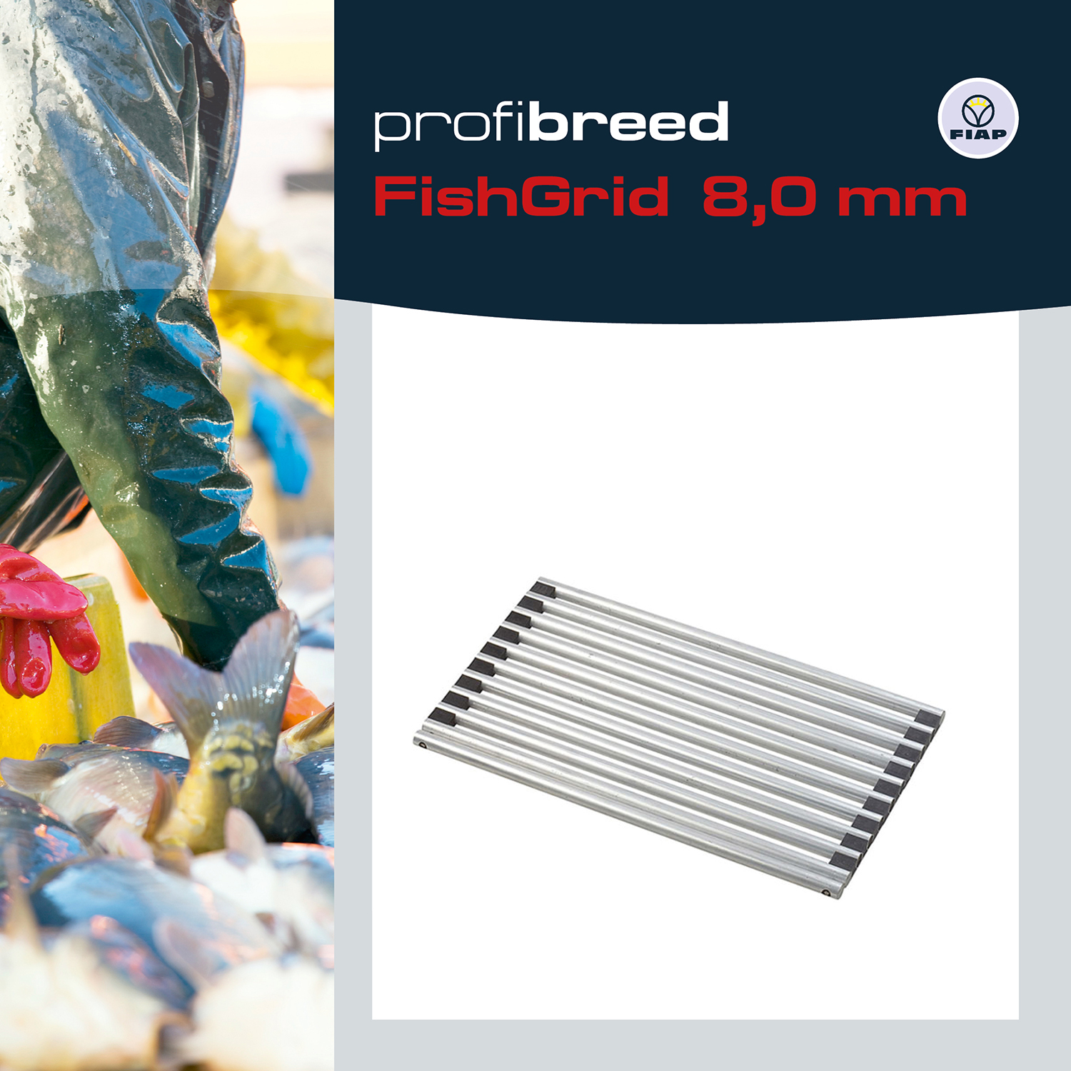 Der profibreed FishGrid - Sortierrost mit einer Spaltweite von 8,0 mm ist aus seewasserbeständigem Aluminium gefertigt und passend für die profibreed FishBox von FIAP.