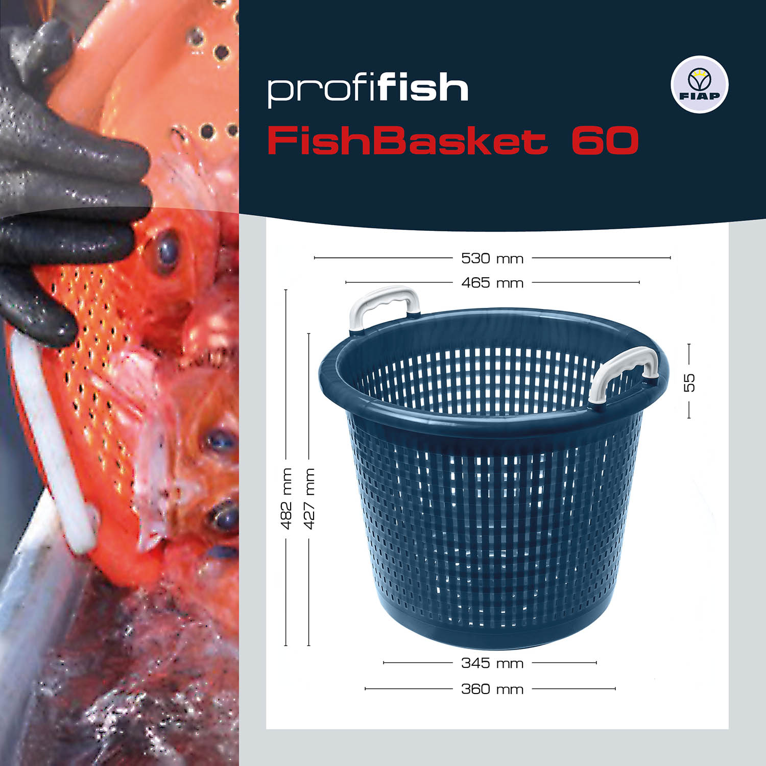 Der profifish FishBasket 60 - ist ein robuster Korb der sich unter den rauen Bedingungen an Bord von Fischereifahrzeugen, bei Einholung des Fangs, beim Sortieren, Spülen, Transportieren von Fischen und Krabben und auch in der Fischindustrie seit vielen Jahren bewährt hat.