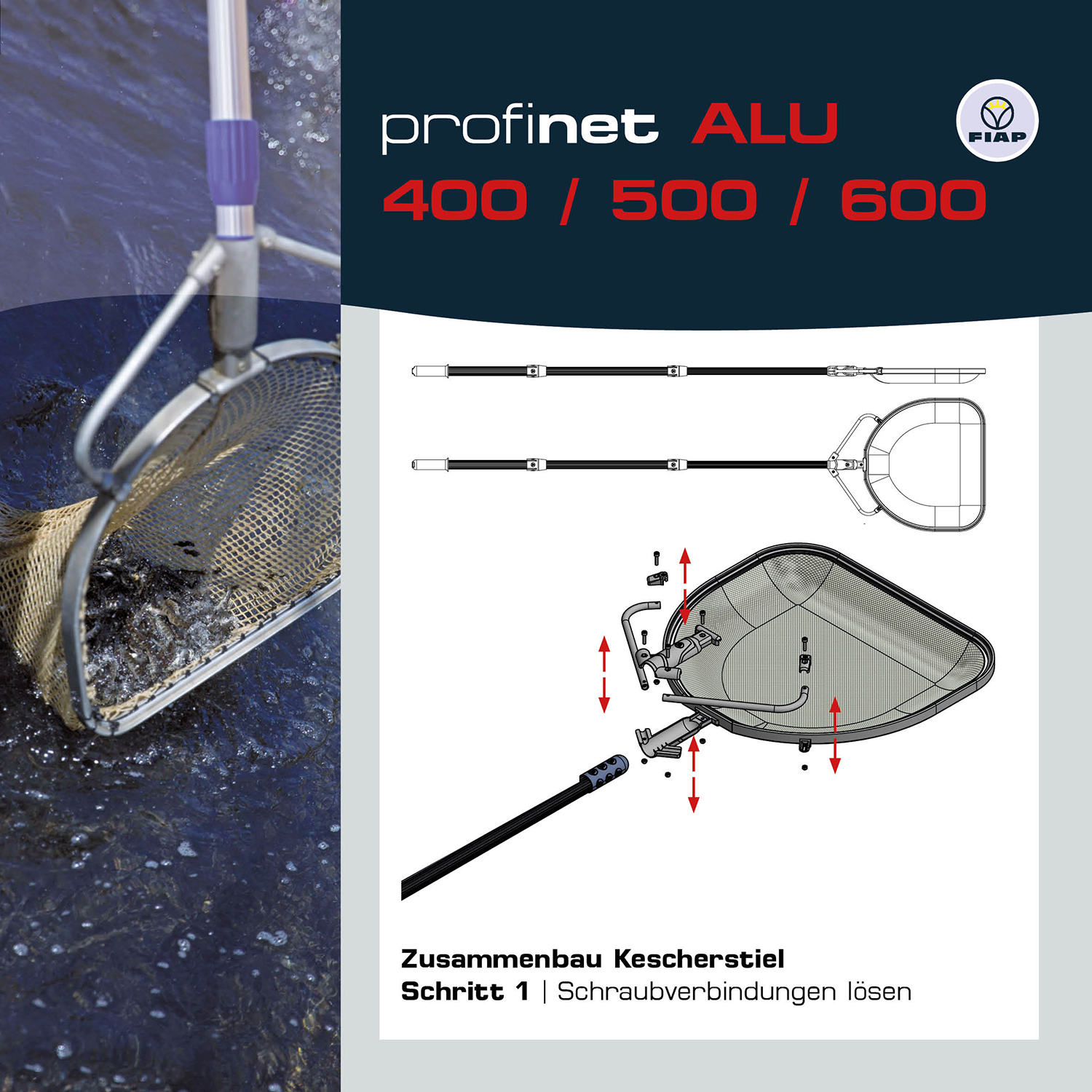 FIAP profinet ALU 600 MW: 15 mm - Maschenweite 15 mm - PROFI - Fischkescher - Material Aluminium - Kescher - Teichkescher - Reinigung - Fischzucht - Aquakultur - Teichwirtschaft - ohne Kescherstiel