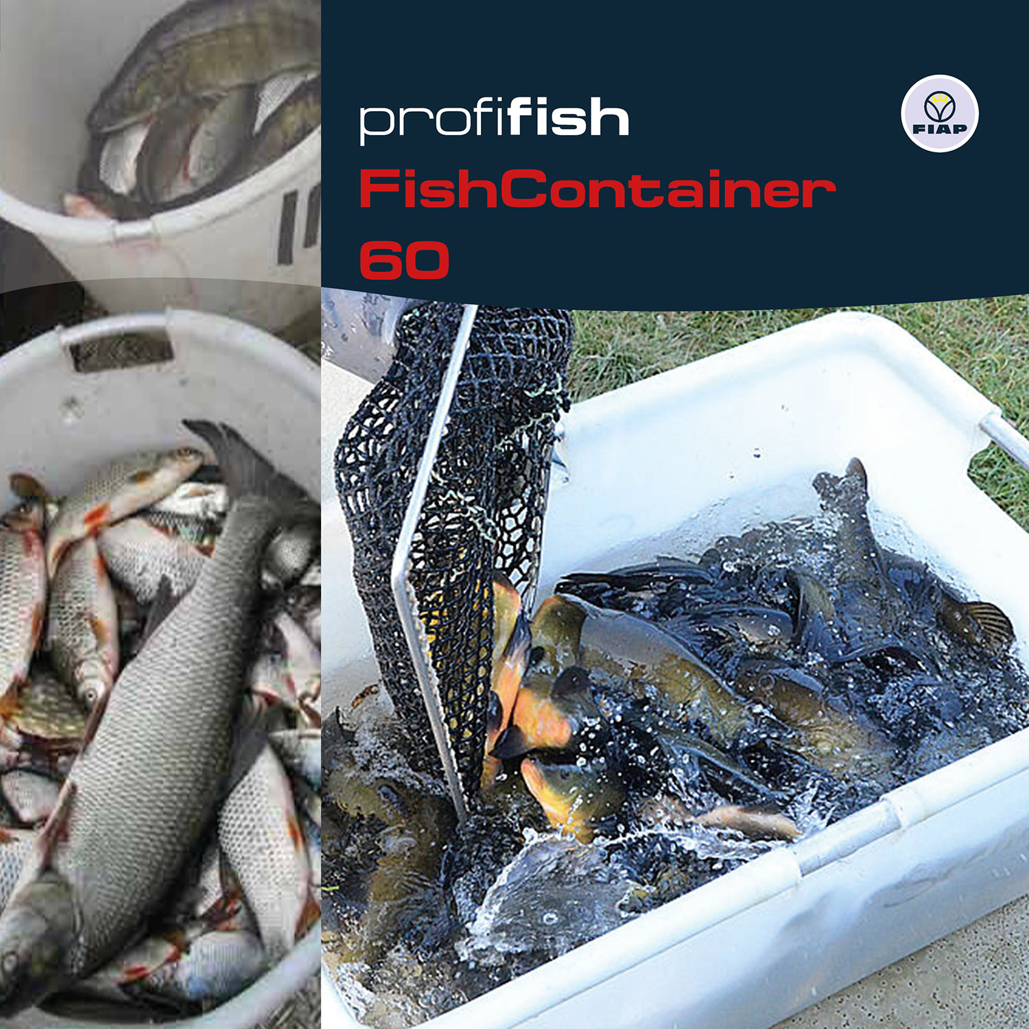 Durch den robusten, integrierten, umlaufenden Aluminiumrahmen ist der profifish FishContainer 60 - Behälter von FIAP für jegliche Art von Transportaufgaben bestens geeignet. Das Material (Kunststoff PE-LD) und die spezielle Bodenform