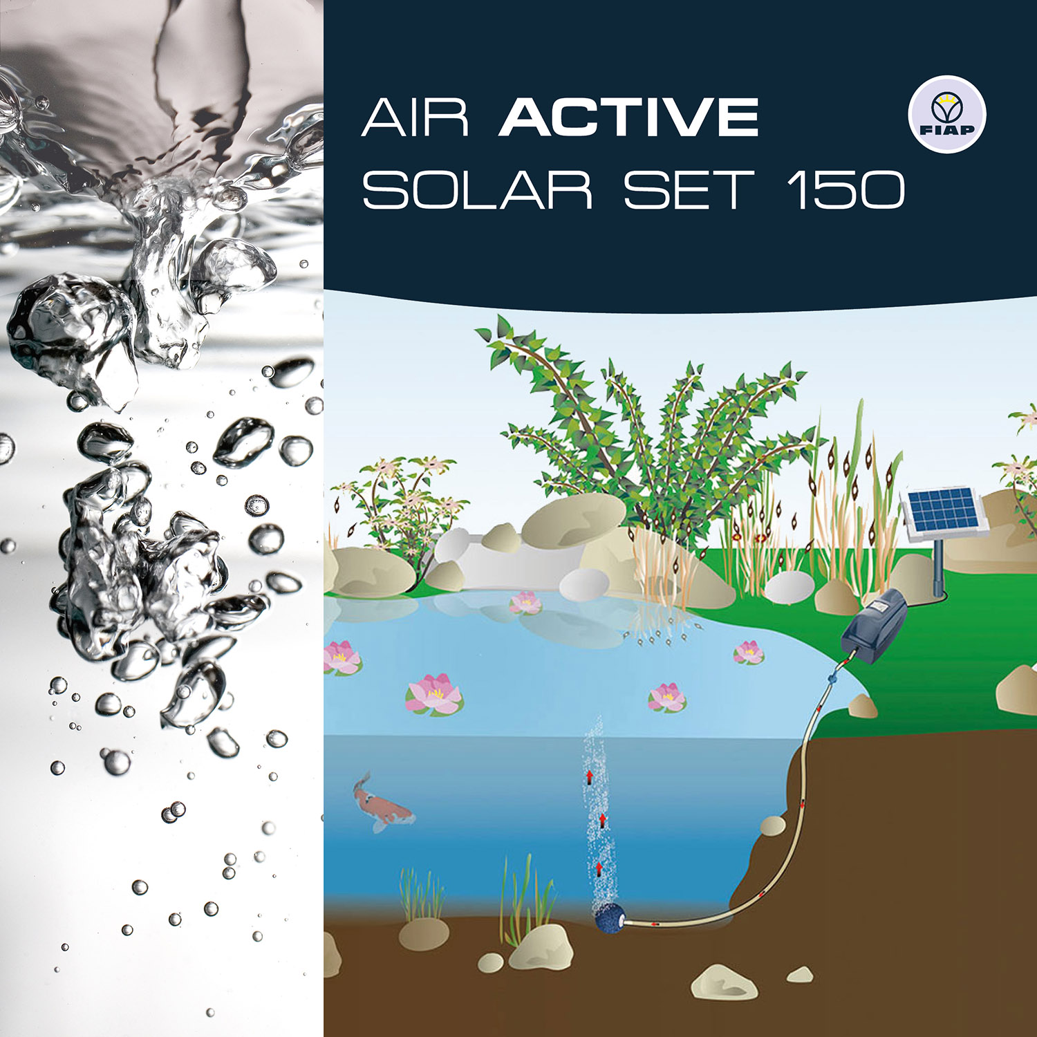 FIAP AIR ACTIVE Solar SET 150 - Teichbelüfter - Solar - Sauerstoffversorgung - Luftpumpe - Gartenteich - Koiteich - 150 l / h Luftleistung - Teichbelüftung