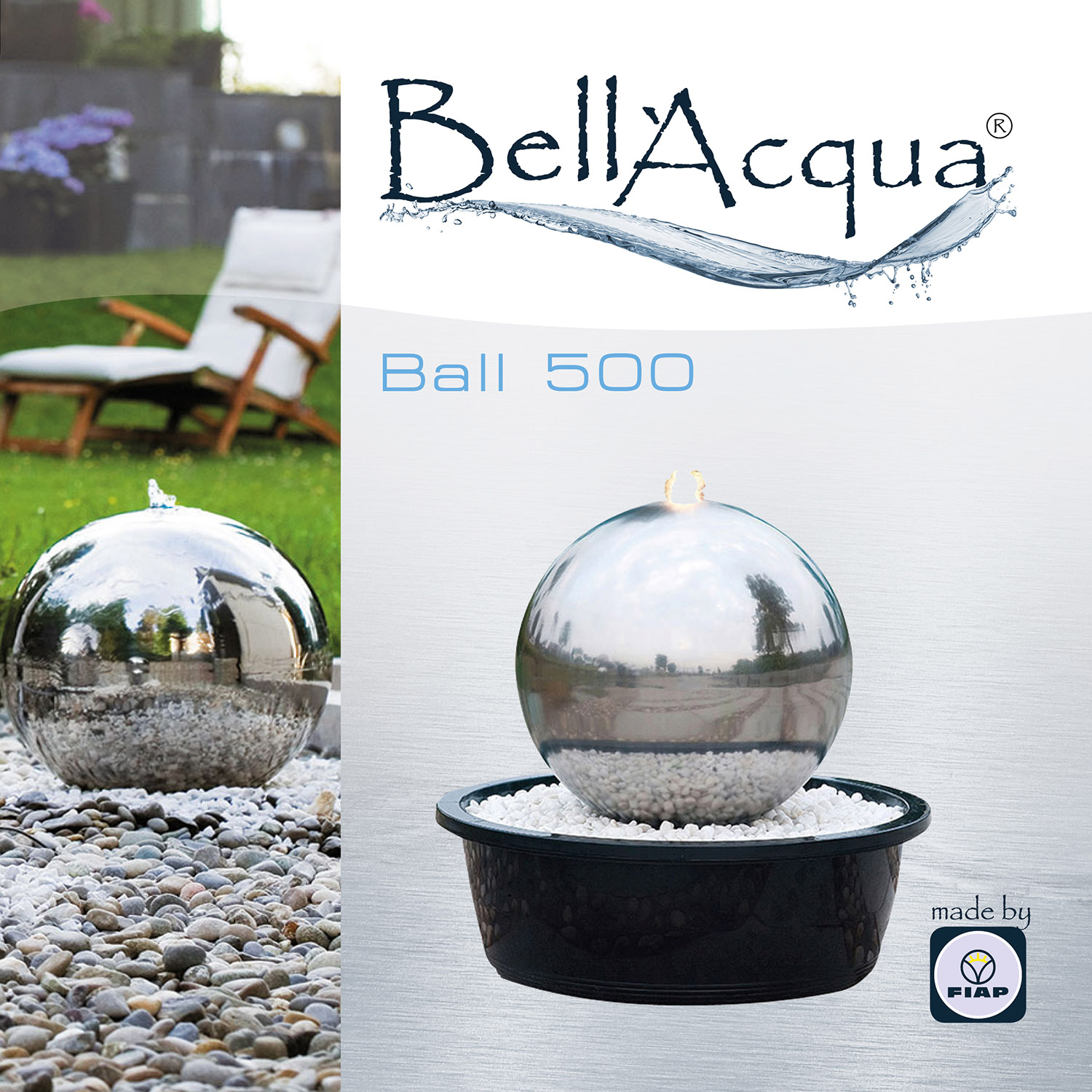 Bell´Acqua® BALL 500 - Kugelbrunnen - Wasserspiel - Teichbrunnen - Gartenbrunnen - Edelstahl - Design - Wasser bewegen - Formschöne Eleganz