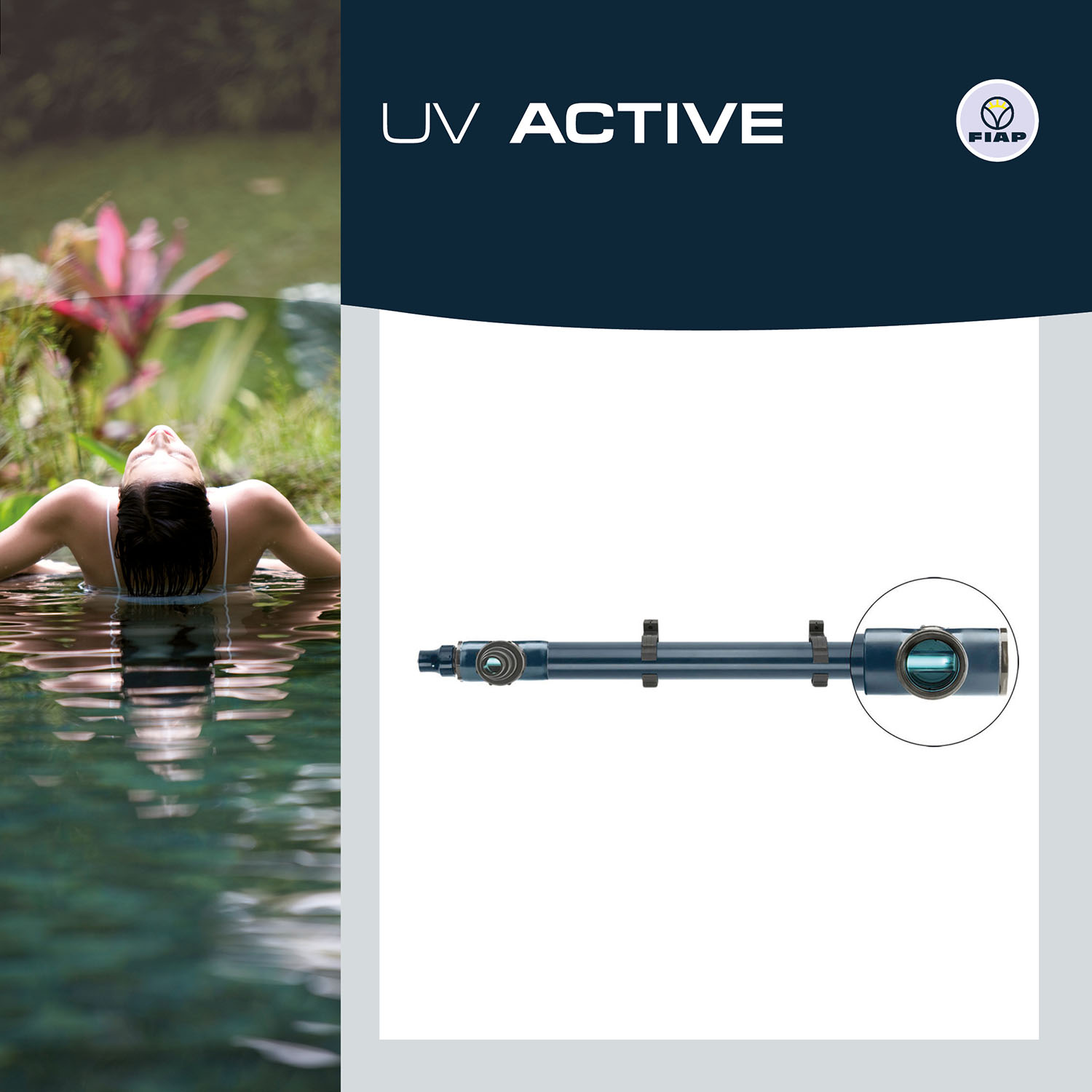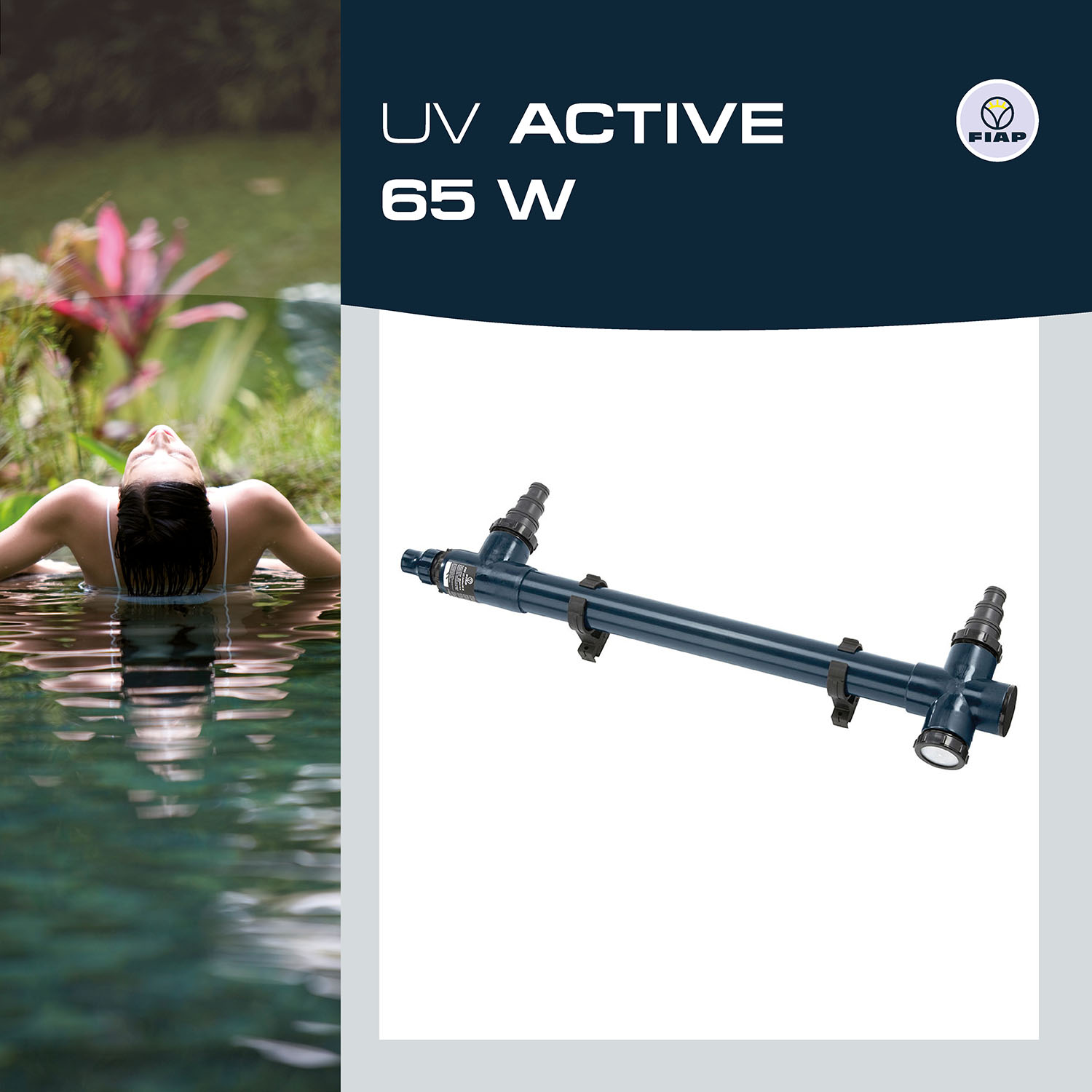 Die UV ACTIVE Produktserie von FIAP ist für das Klären von Garten- und Schwimmteichen geeignet. Durch die neue T5 Technologie wird eine 30 % höhere Effizienz als bei übliche PL Lampen erreicht. Die hochintensive UVC Bestrahlung tötet Krankheitserreger und Keime gezielt ab. Dadurch wird das Algenwachstum reduziert. Die verbleibenden Algen verbinden sich in den UV ACTIVE Geräten und können vom Filtersystem problemlos aufgenommen werden. Höchste Effektivität dank perfekter Kombination aus Durchflussmenge und Bestrahlungsintensität. In Kombination mit einem FIAP Filtersystem sorgen die UV ACTIVE Vorklärgeräte für klares und gesundes Wasser in Ihrem Teich.