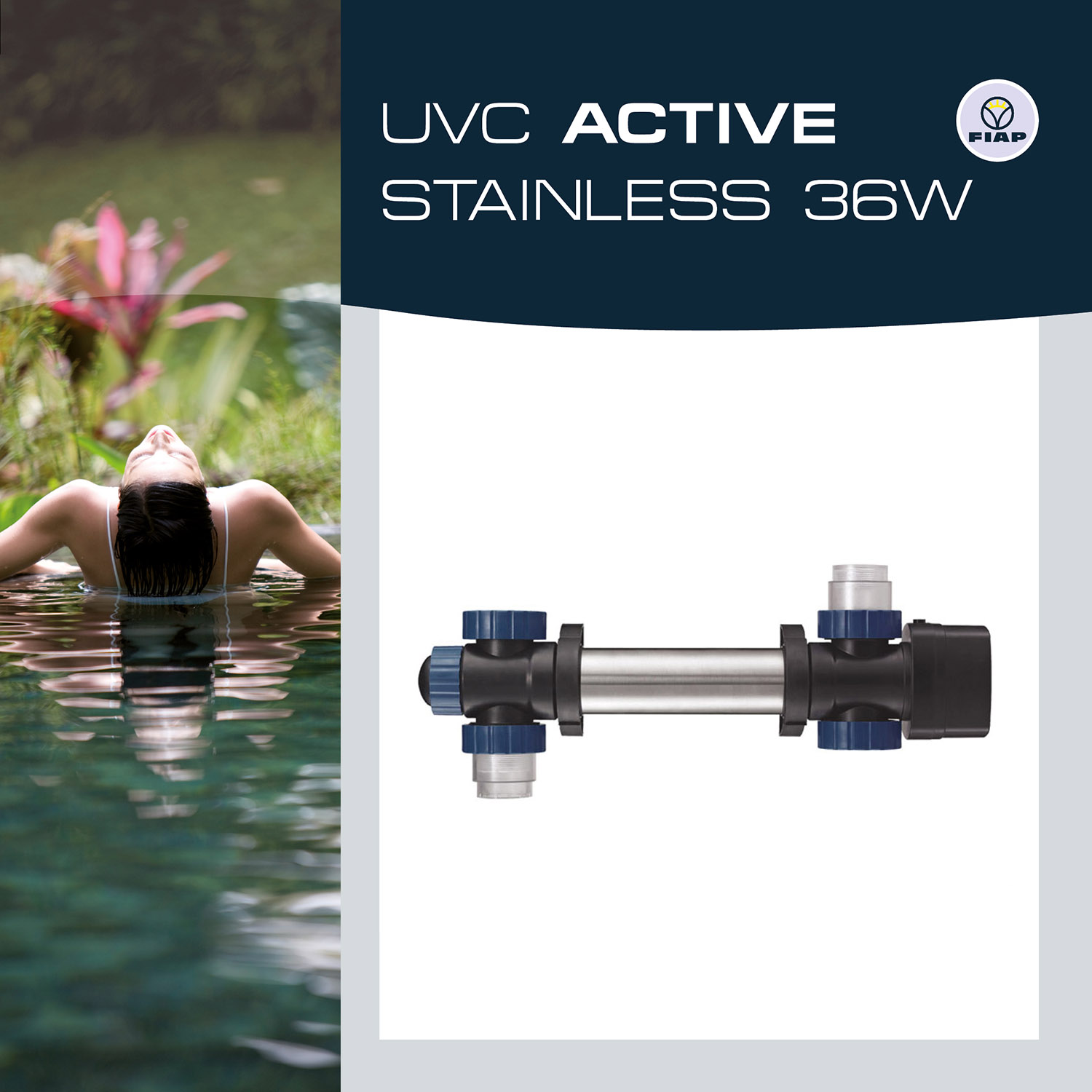 Professionelle, aus Edelstahl gefertigte UVC ACTIVE Geräte von FIAP sorgen für klares Wasser im Garten-, Koi- und Schwimmteich, indem sie durch ihre ultraviolette Strahlung Keime reduzieren, die für eine unerwünschte Algenbildung verantwortlich sind.