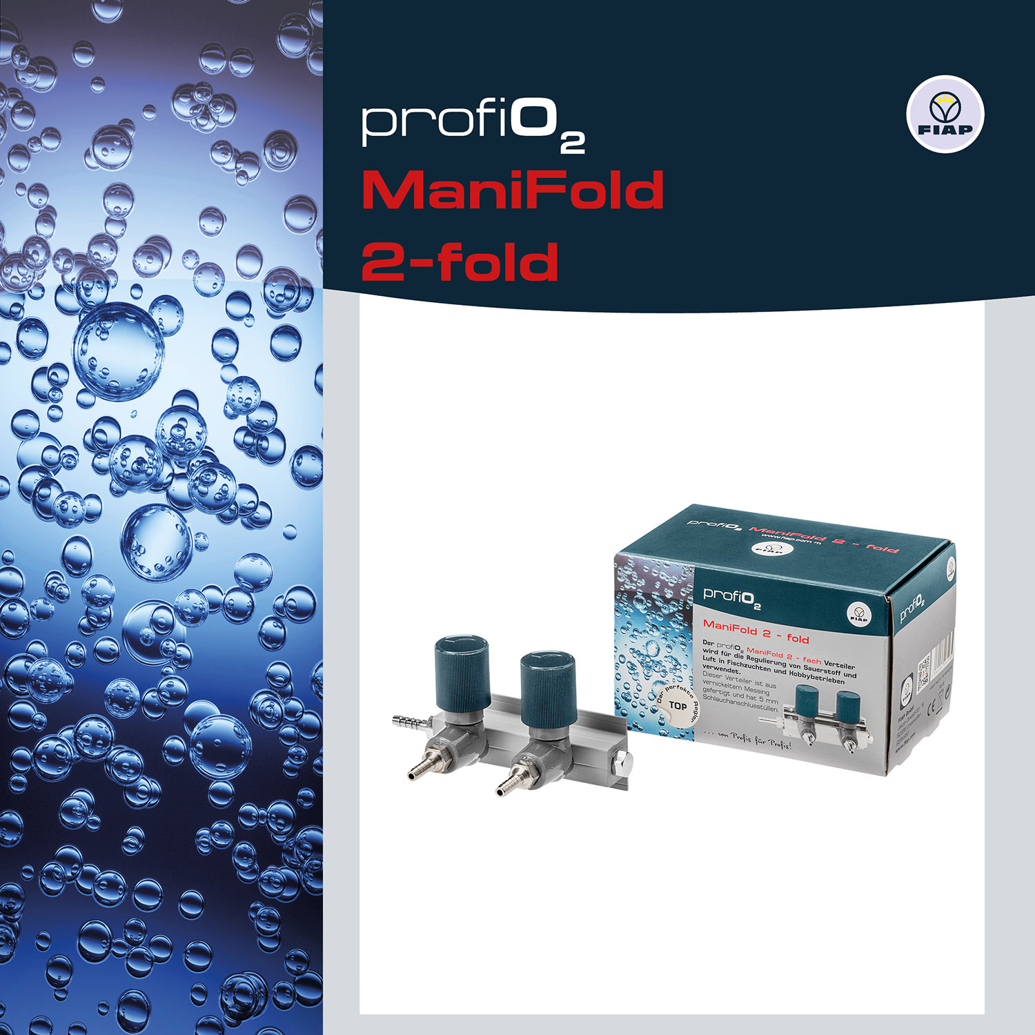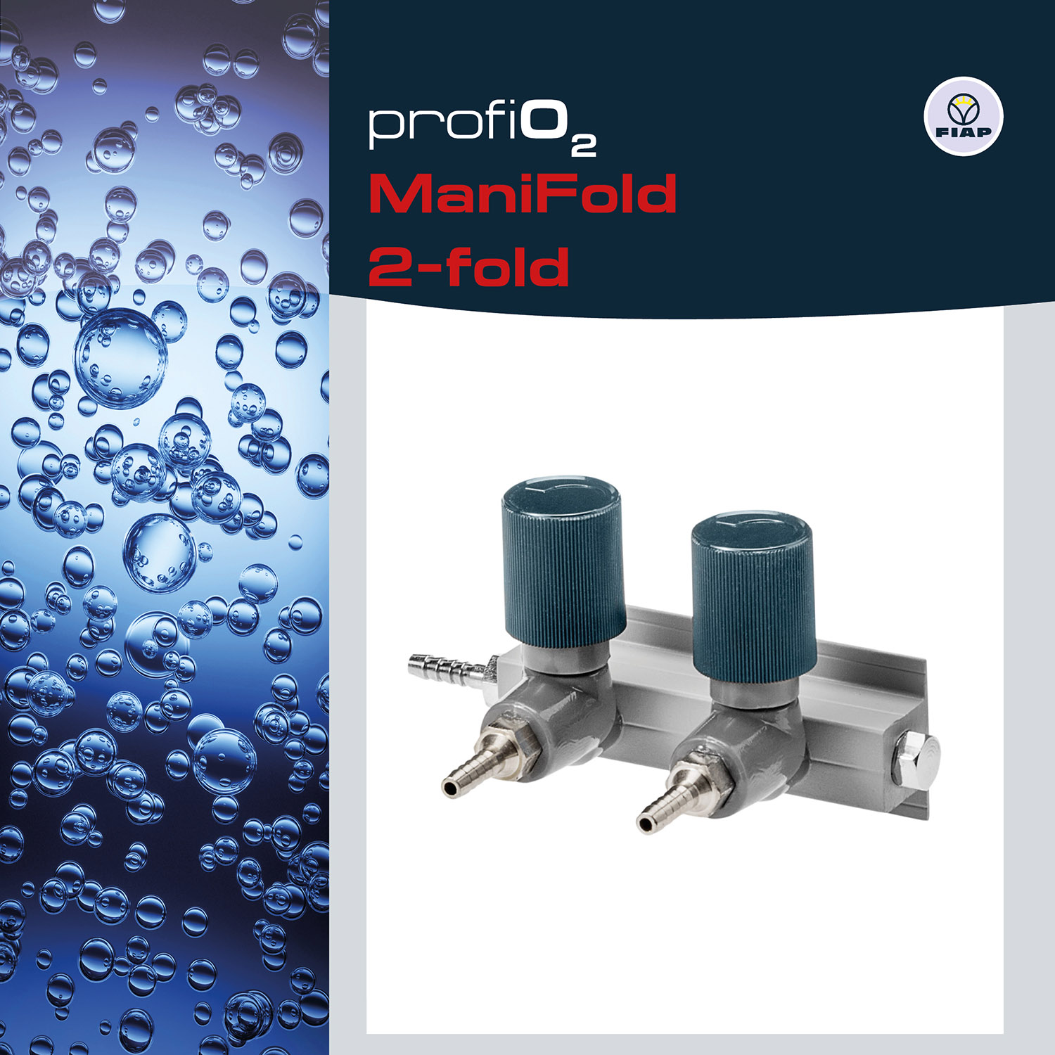 FIAP profiO2 ManiFold 2 - fold - Luft- und Sauerstoffverteiler - inkl. Wandbefestigung - Regulierhähne - Eingang 5 mm - 2 Abgänge 5 mm - Sauerstofftechnik - Fischzucht