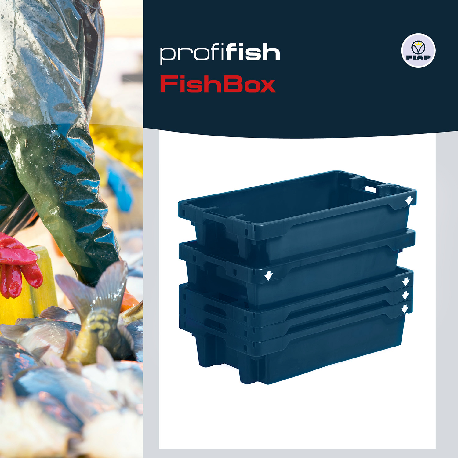 Die Kisten werden durch die Arretierung und dem angepassten Sicherungsrand stabil und sicher platziert. Unser Fischkasten ist stapelbar und nestbar. Durch das Nestprinzip wird bis zu 65 % Platz gespart.