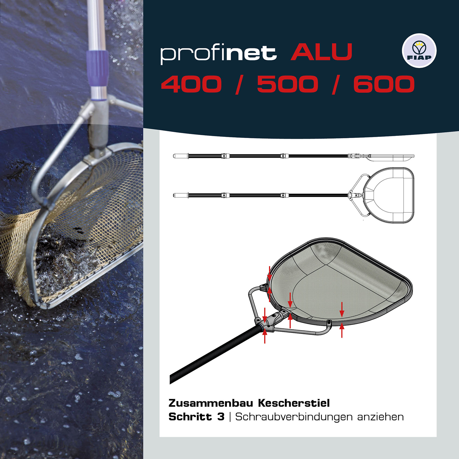 FIAP profinet ALU 500 MW: 5 mm - Maschenweite 5 mm - PROFI - Fischkescher - Material Aluminium - Kescher - Teichkescher - Reinigung - Fischzucht - Aquakultur - Teichwirtschaft - ohne Kescherstiel