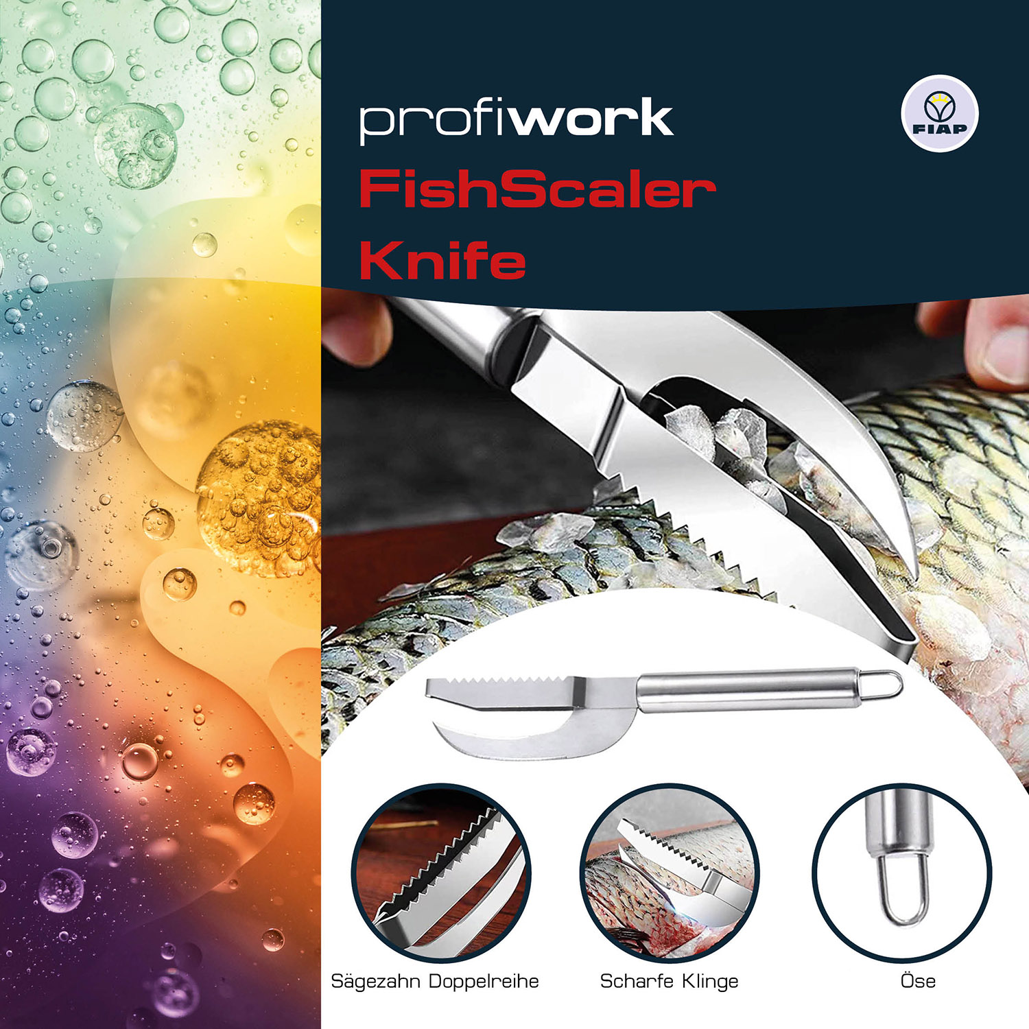 FIAP profiwork FishScaler Knife - Fischentschupper mit Messer - Schaber - Handentschupper - Edelstahl - leichte Reinigung - spülmaschinengeeignet - Haushalt - Fischzucht - Teichwirtschaft